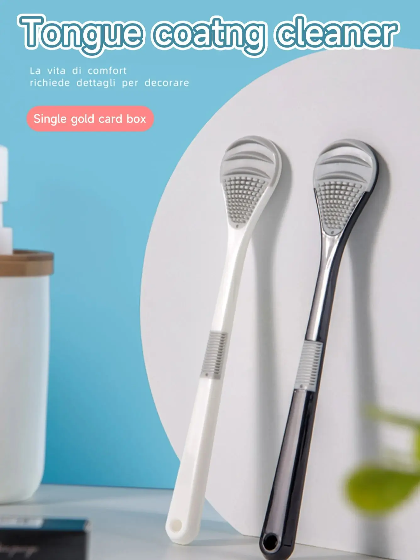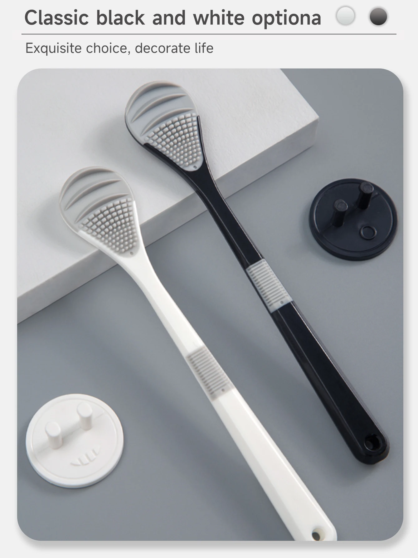 Black and white double color tongue cleaner soft rubber tongue scraper handle non-slip design independent box sent